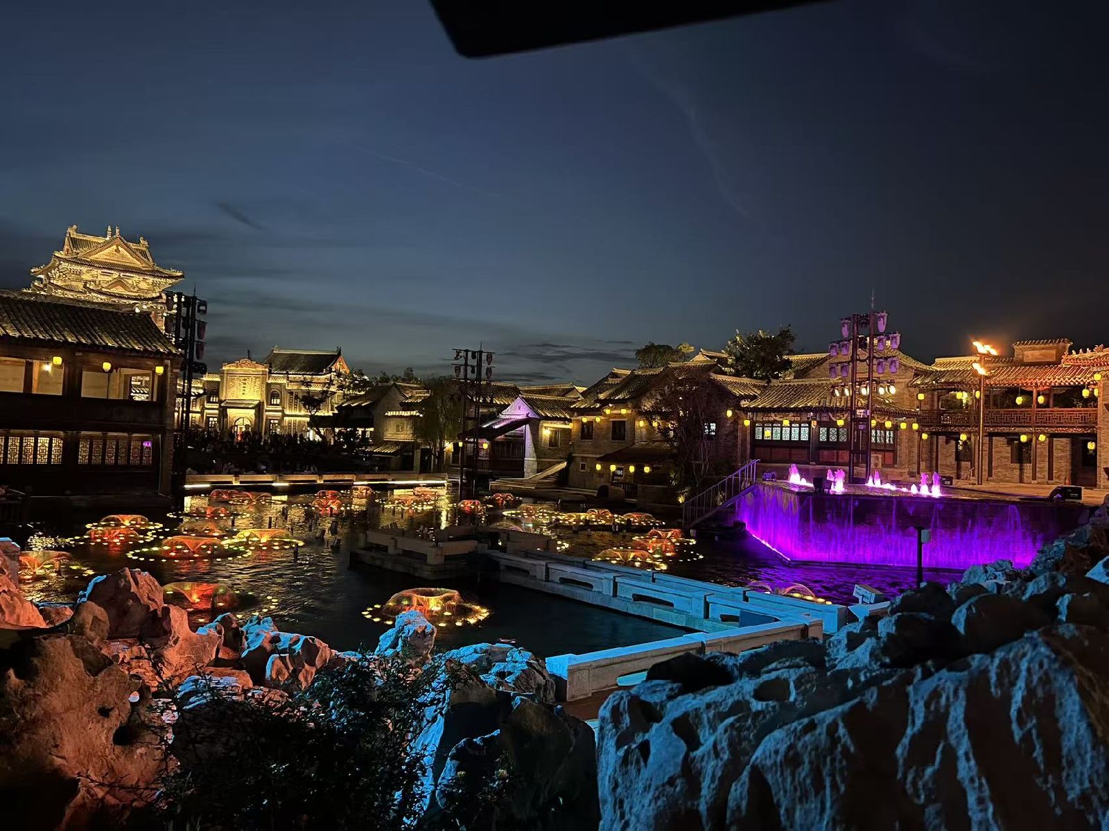 当夜幕降临,古城焕发出全新的魅力。19:30分,大型泉秀表演《明水谣》准时开演,这场融合水幕投影、激光特效与实景演出的视听盛宴,让员工们赞叹不已。随后的自由活动时间,大家或欣赏无人机灯光秀,或漫步在流光溢彩的古城水系旁,感受传统与现代的完美融合。"白天看历史,晚上赏科技,这种体验太难忘了!"技术部王工程师兴奋地说。